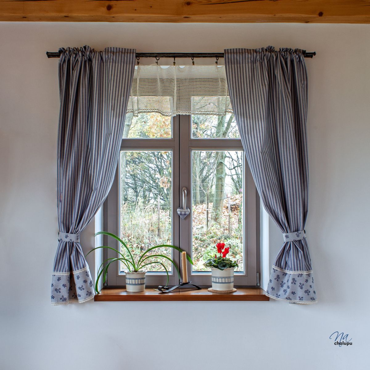 Modré kanafasové závěsy jsou ideální volbou pro chalupy i domy ve venkovském stylu. Vzor drobných kostiček je tradiční, ale nepůsobí rušivě – naopak dodá prostoru rytmus a charakter.