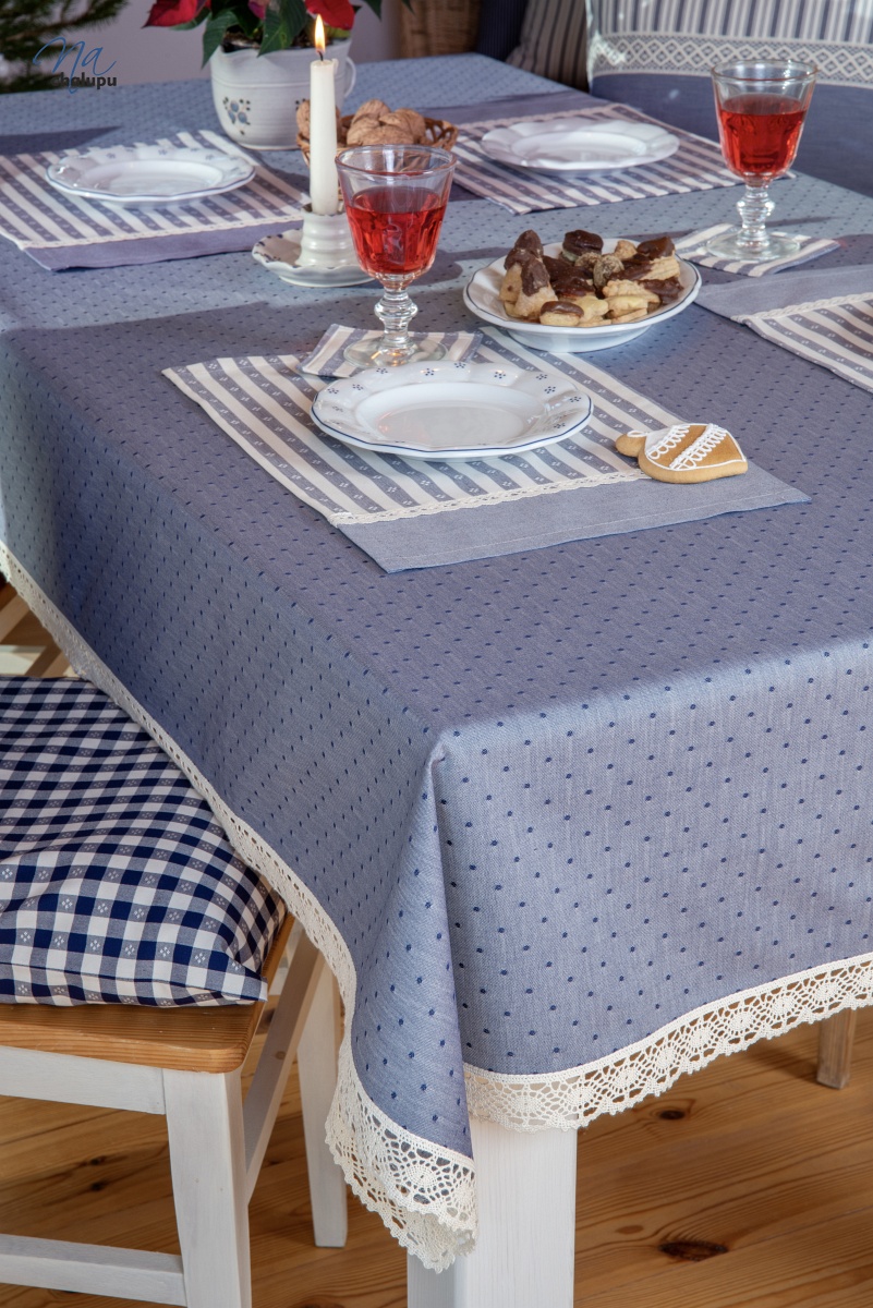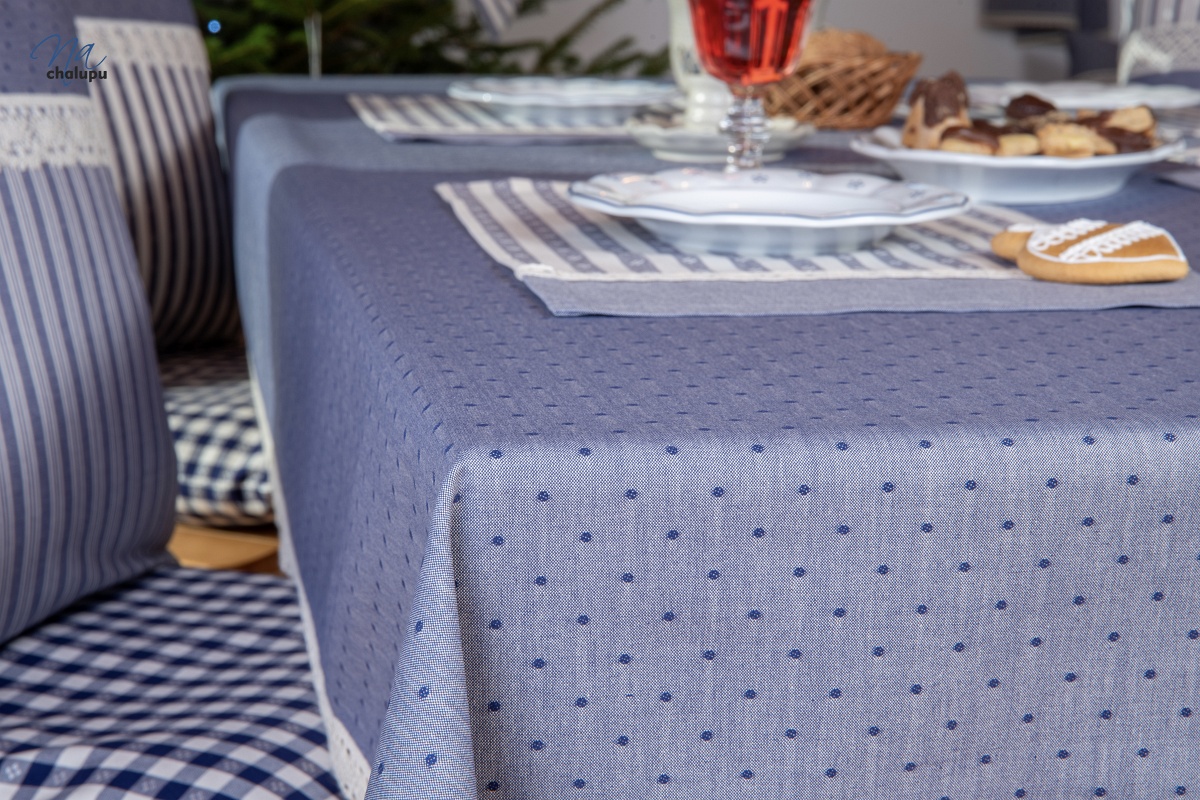 Ubrusy a textil na stůl: srdce kuchyně v modré